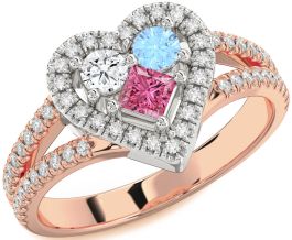 Diamond Platinum & Rose Gold Heart Three Stone Pave Mother's Ring
