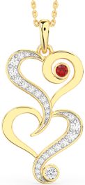 This striking pendant intertwines two elegant hearts, accented with a trail of shimmering brilliance and vibrant pops of color. A vivid green and passionate red gem bring contrast and harmony, symbolizing individuality within unity. Bold yet graceful, this design celebrates love in its most dynamic form—where two distinct souls dance together in one beautiful rhythm.
