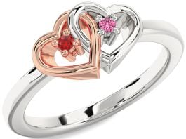 Silver & 10K Rose Gold Heart Two Stone Promise Ring