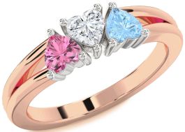 Platinum & Rose Gold Heart Three Stone Mother's Ring