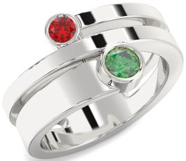 This contemporary promise ring features a bold and minimalist double-band design in polished yellow gold, symbolizing strength and unity. At the center of each band lies a bezel-set gemstone—one a vivid green, the other a striking red—representing two hearts in perfect harmony. Ideal as a promise ring, it blends modern sophistication with meaningful sentiment, capturing everlasting love.