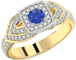 Diamond Blue Sapphire Gold Silver Halo Round Pave Promise Ring