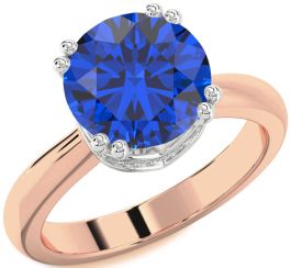 Diamond Blue Sapphire White Rose Gold Halo Round Solitaire Engagement Ring