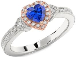 Diamond Blue Sapphire White Rose Gold Heart Halo Engagement Ring