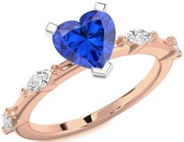 Diamond Blue Sapphire White Rose Gold Heart Engagement Ring
