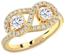 Diamond Gold Silver Infinity Round Two Stone Pave Ring