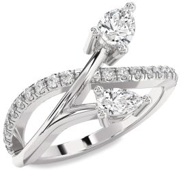 This elegant Promise ring features a graceful bypass design in radiant yellow gold. At its center are two pear-shaped stones—one deep red, the other brilliant white—symbolizing the powerful union of passion and purity. The band is adorned with pavé-set diamonds, adding sparkle. With its romantic silhouette and symbolism, this ring is a perfect tribute to lasting love.