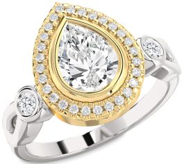 Diamond Platinum & Yellow Gold Halo Pear Engagement Ring
