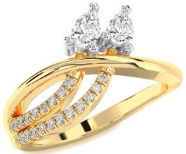 This vibrant Promise ring features a contemporary bypass design, accented with pavé-set diamonds along the split shank for a touch of brilliance. At the center, two pear-shaped gemstones—one in lush green and the other in deep red—are set in opposite directions, symbolizing the union of two distinct souls. Crafted in yellow gold, this Promise ring radiates passion and unity.