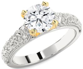 Diamond Platinum & Yellow Gold Round Vintage Engagement Ring