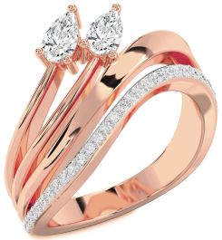 Diamond Rose Gold Silver Pear Two Stone Ring