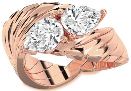 This distinctive Promise ring features a sculptural gold band with flowing, feather-inspired details that wrap gracefully around the finger. At its center, two pear-shaped stones—one icy blue, one radiant white—are cradled in a bold open setting. Symbolizing harmony and devotion, this striking ring blends artistry with deep emotional meaning, making it a powerful and romantic gesture.