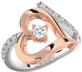 Diamond Silver & 10K Rose Gold Heart Promise Ring