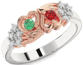 Diamond Silver & 10K Rose Gold Heart Two Stone Promise Ring