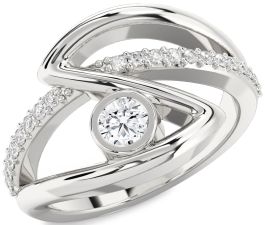 This modern Promise ring showcases a captivating eye-shaped design, centered around a bezel-set round diamond that draws attention with its brilliance. The elegant split shank is adorned with pavé-set diamonds, enhancing the ring’s sparkle and depth. Crafted in polished yellow gold, this Promise ring beautifully blends bold contemporary style with a heartfelt symbol of lasting love and devotion.