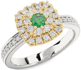 Diamond Emerald White Yellow Gold Halo Round Pave Promise Ring