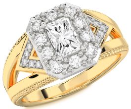 Diamond Platinum & Yellow Gold Halo Octagonal Engagement Ring