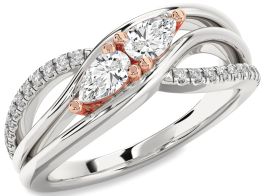 Diamond Silver & 10K Rose Gold Pear Two Stone Ring