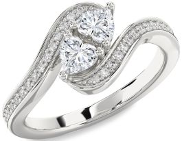 This elegant promise ring showcases two heart-shaped center stones set side by side, representing a deep and lasting connection. A graceful bypass band flows around the hearts and is adorned with shimmering accent diamonds that enhance the brilliance of the design. Crafted with timeless beauty, this ring is a radiant symbol of love, unity, and shared commitment.