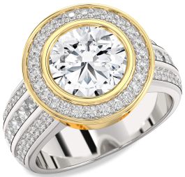 Diamond White Yellow Gold Round Halo Pave Engagement Ring