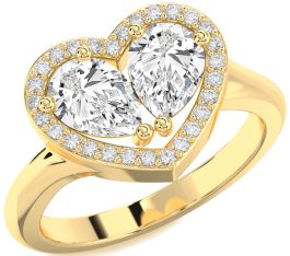 Celebrate everlasting love with this captivating Promise ring, artfully crafted in yellow gold. The centerpiece features two stunning pear-cut gemstones—one deep red and one soft pink—nestled side by side within a heart-shaped halo of shimmering white stones. This romantic design symbolizes unity and passion, making it a meaningful token of commitment and affection.