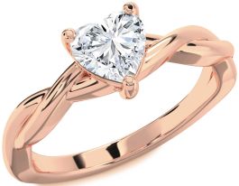 Diamond Rose Gold Heart Knot Solitaire Engagement Ring
